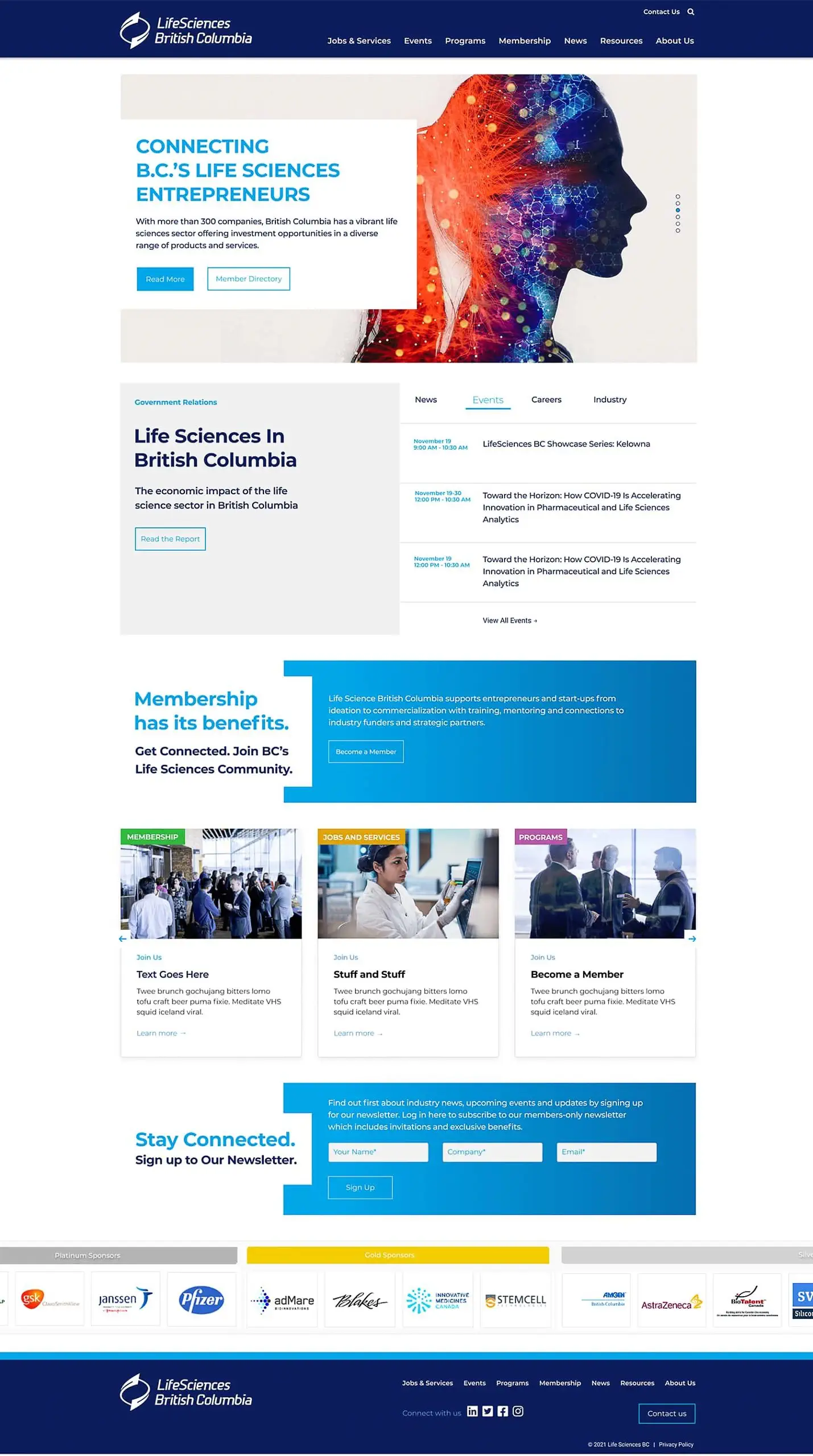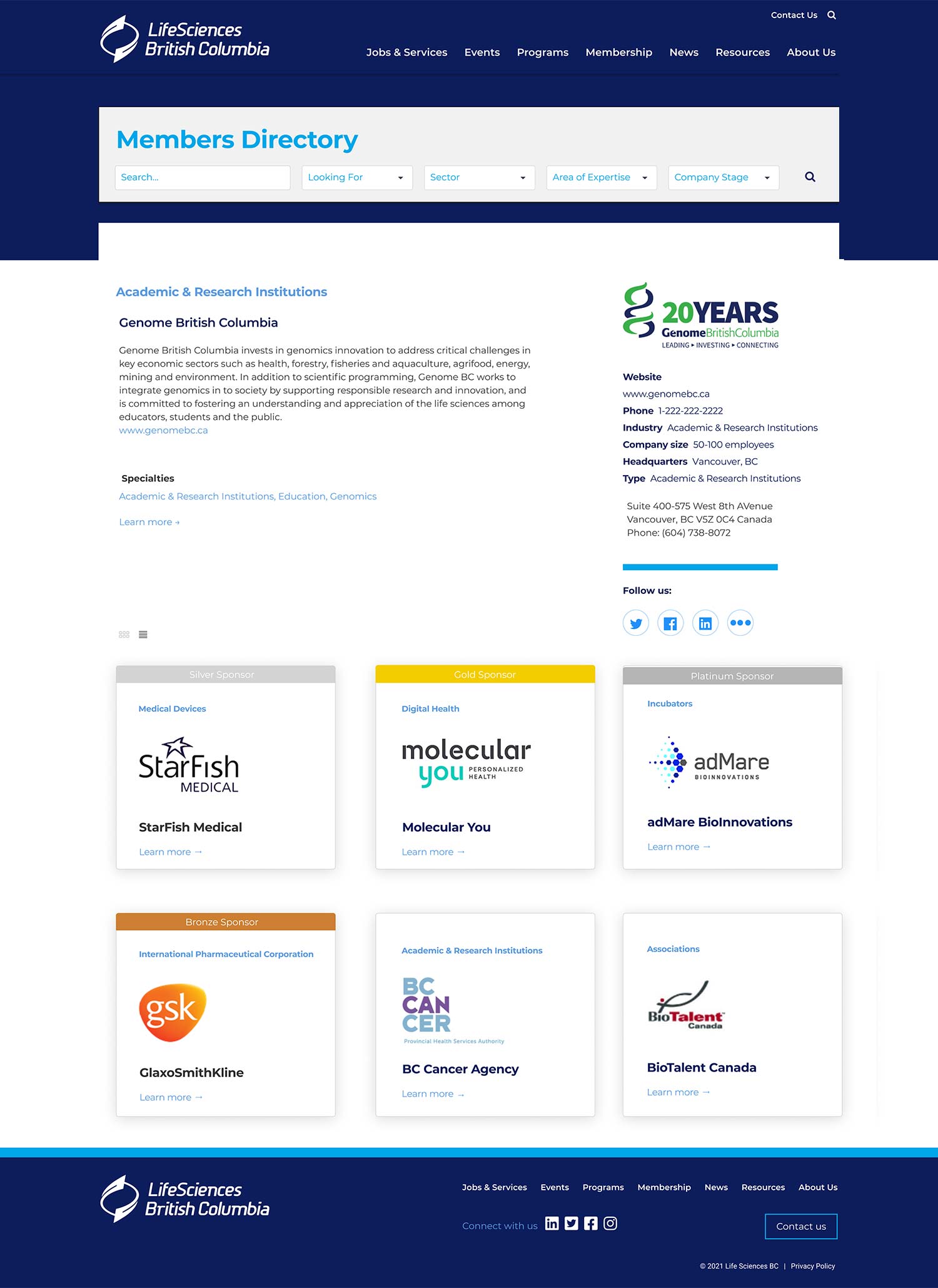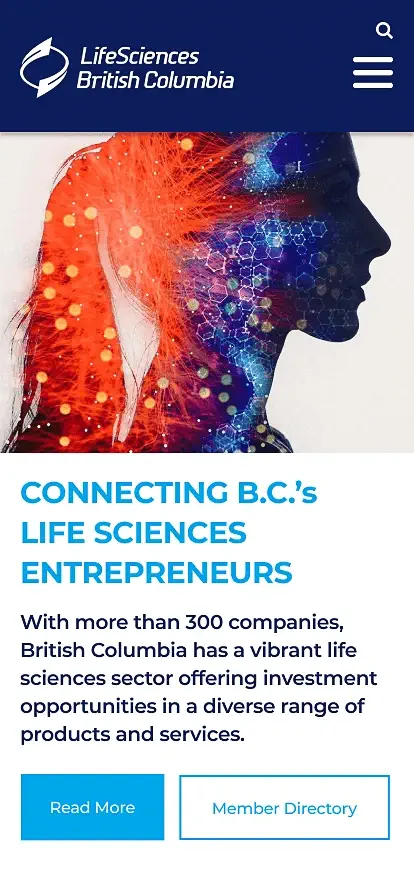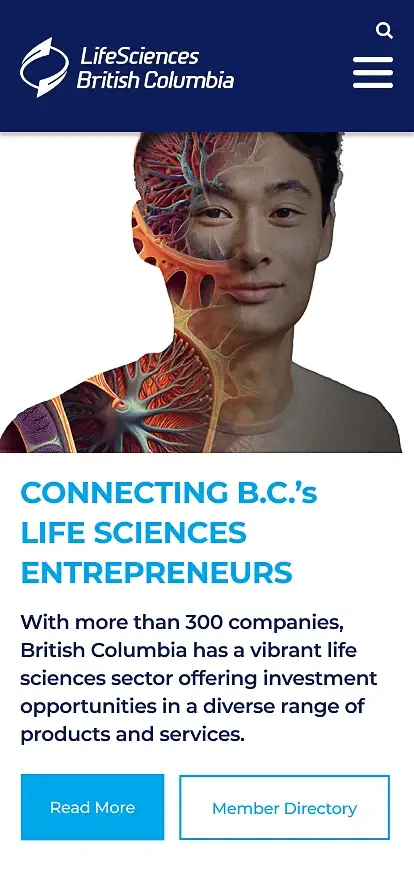 LifeSciences BC is the industry association representing British Columbia's life sciences sector, supporting companies, researchers, and investors through advocacy, investment attraction, and industry promotion. Fusebox was engaged to provide art direction and user experience leadership, shaping a cohesive website design system that could support multiple stakeholders and evolve with the organization over time.