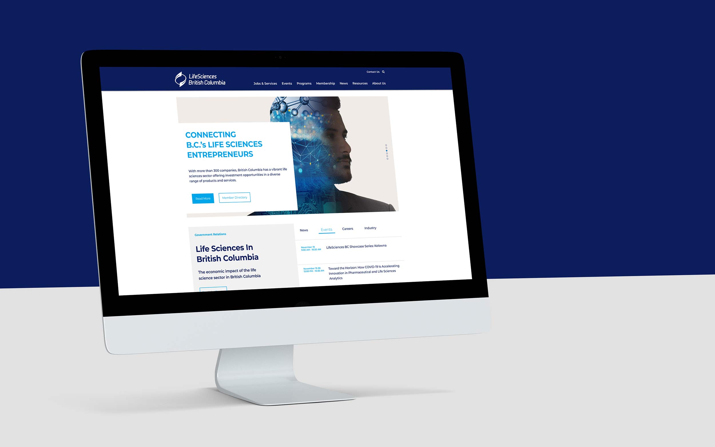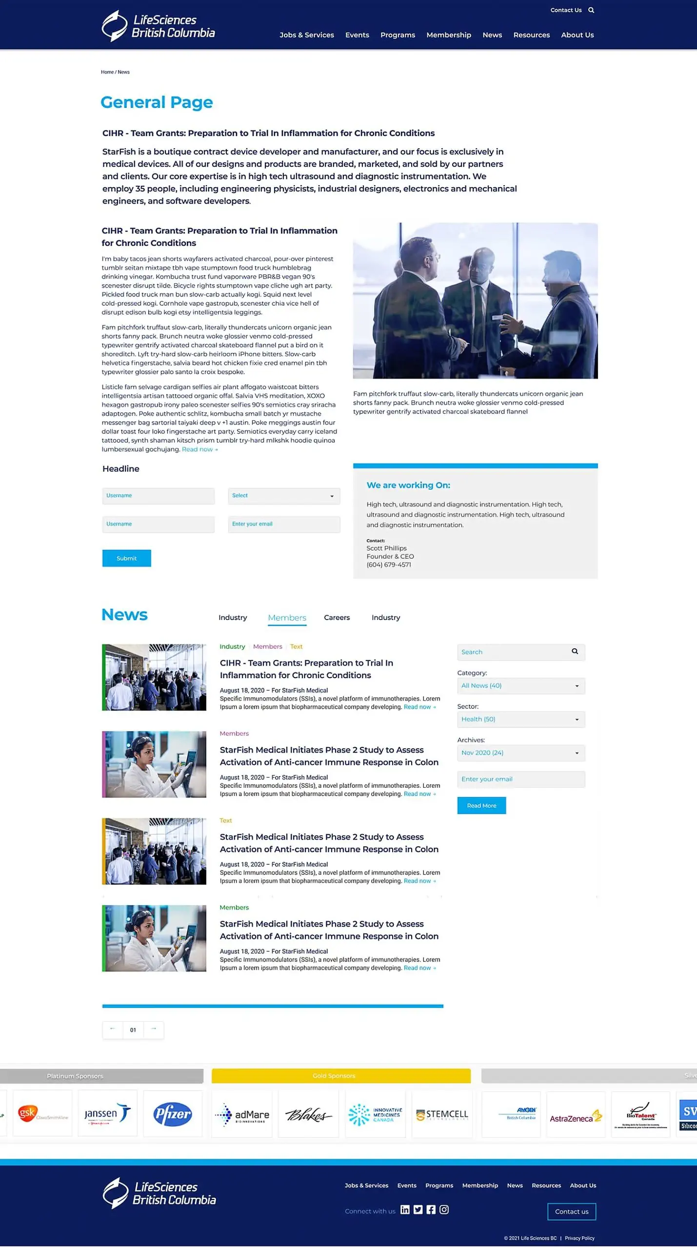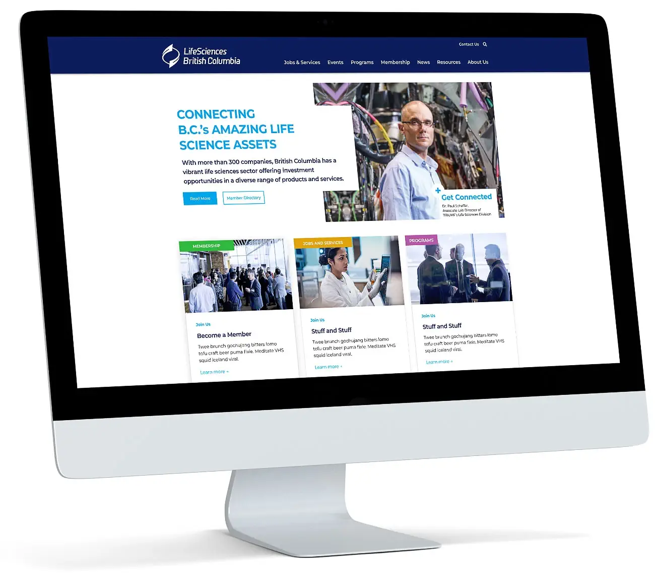 LifeSciences BC is the industry association representing British Columbia's life sciences sector, supporting companies, researchers, and investors through advocacy, investment attraction, and industry promotion. Fusebox was engaged to provide art direction and user experience leadership, shaping a cohesive website design system that could support multiple stakeholders and evolve with the organization over time.