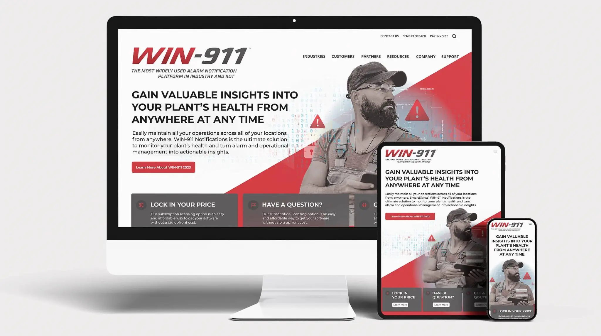 WIN-911's digital presence evolved into a structured, enterprise-ready platform aligned with its role inside industrial automation ecosystems, including Rockwell Automation and Schneider Electric. We repositioned the messaging to reflect the expectations of Fortune 500 operators while building the website into a functional business tool — not just a marketing layer. The platform supports subscription renewals through ecommerce, houses a comprehensive knowledge base and customer support infrastructure, and enables partner marketing and targeted email initiatives. With more than 18,000 installations worldwide, the strengthened positioning and digital foundation supported continued growth and visibility, culminating in acquisition by CapStreet Group.